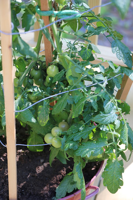 One morning I was sitting out on the deck feeling sad that I would not be able to have a vegetable garden for the second year in a row. I had asked Don to move my house plants, which included; rosemary, lavender, sage, basil and a lemon tree out onto the deck. They looked so lovely out there that I thought, "Why don't I plant my garden on the deck? It has full sun and southern exposure, and if I plant in railing planters I can tend them standing"