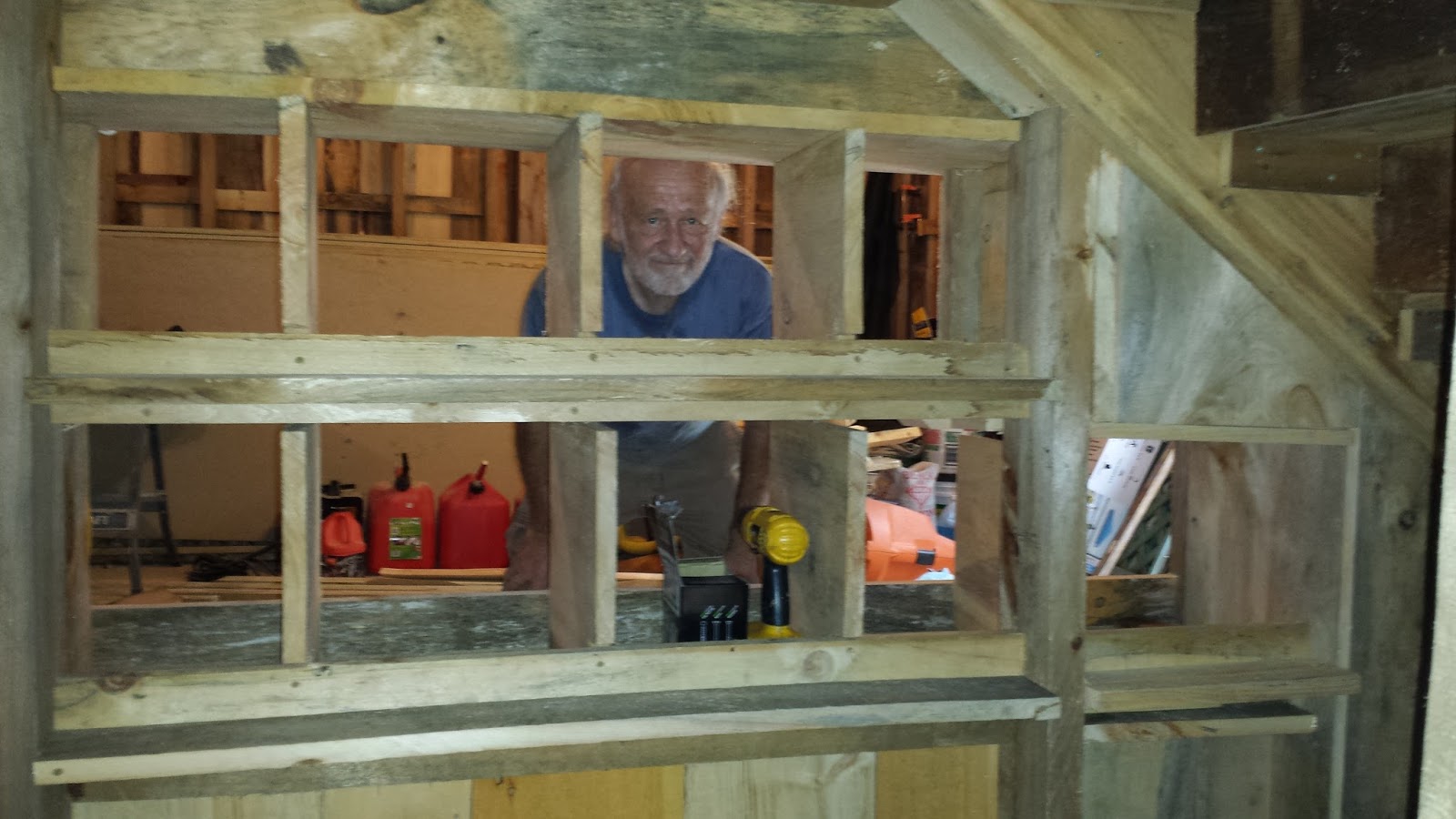 In the above photo Don is in his workshop and I am in the nest box room of the chicken coop.