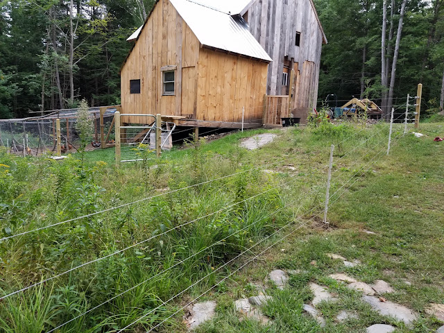 Don taking a break, sitting on the ramp to the goat barn, earlier today. He has worked so hard all summer to get things ready for the chickens and goats. Took on a little too much at one time but now things should settle down bit as we head into fall.